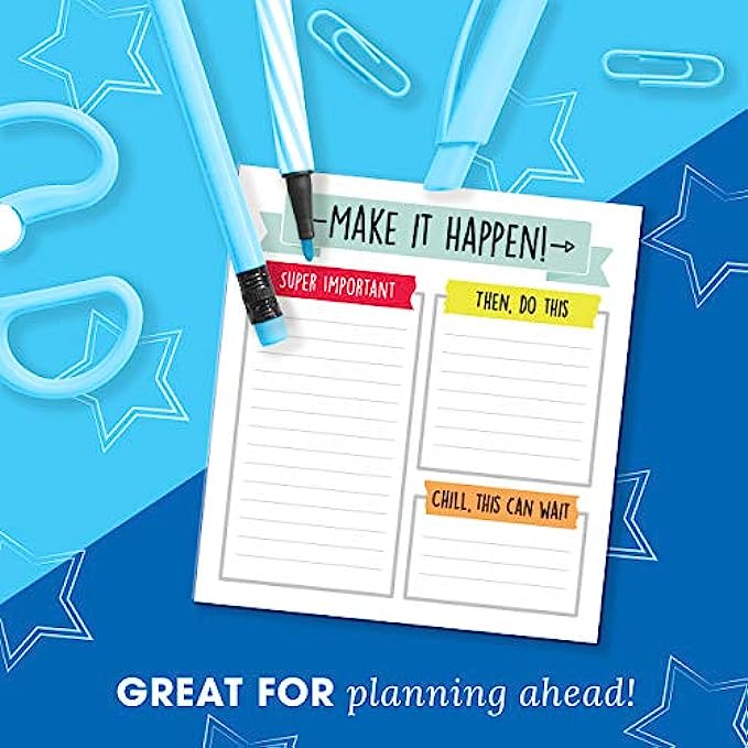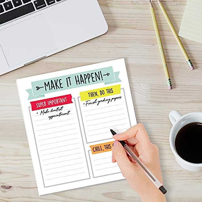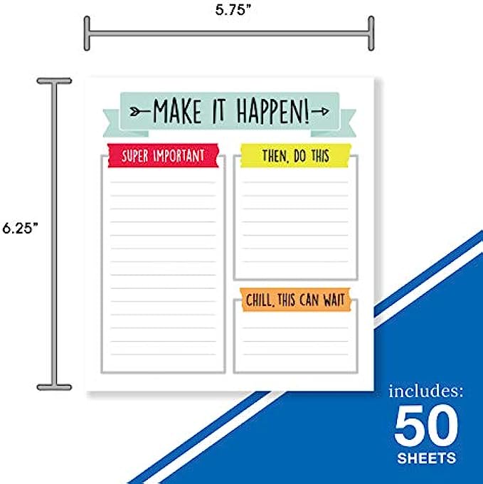 • What’s Included: 50 lined pages are included with 3 organized sections: “Super Important”, “Then, Do This”, and “Chill, This Can Wait” to organize your needs by priority. A “Make It Happen!” inspirational quote is featured at the top of each page