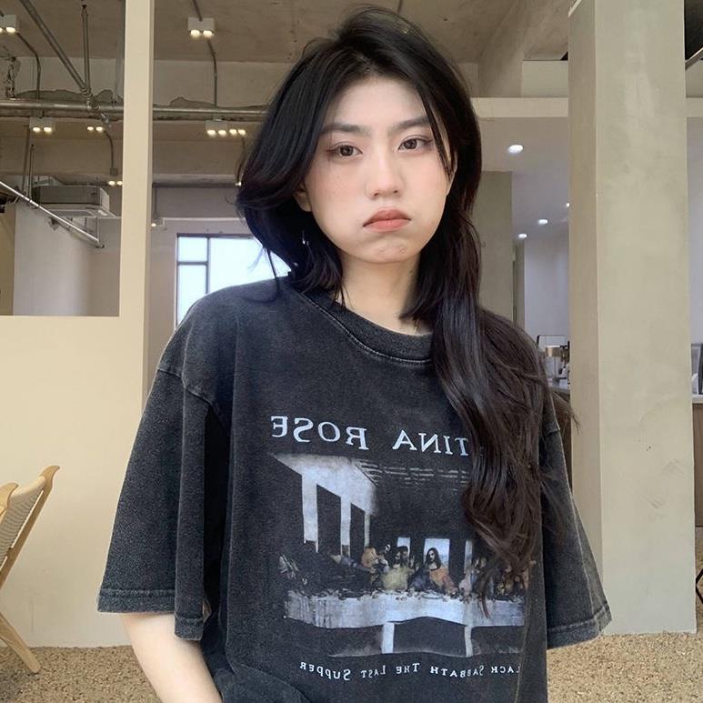 TGNS 水洗做舊 短袖 T恤 短袖上衣 美式復古 ins風 oversize 寬鬆 短t 夏天衣服 衣服女